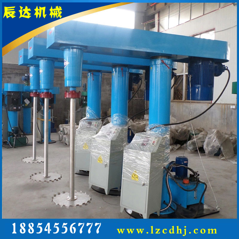 液壓升降分散機該機由機械升降、主傳動、攪拌系統、導向機構、電控箱五部分組成,各部分結構緊湊合理。分散盤型式:平盤鋸齒式、三義槳式、碟式